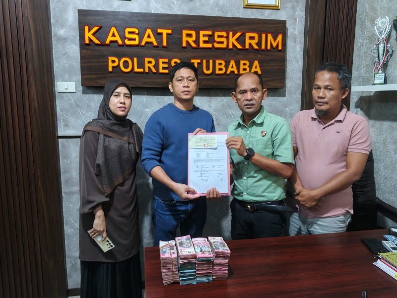 Penyerahan uang dilakukan di Ruang Kasat Reskrim Polres Tubaba dan dipimpin langsung oleh Kasat Reskrim AKP Juherdi Sumandi, S.H., M.H., mewakili Kapolres Tulang Bawang Barat AKBP Sendi Antoni, S.I.K., M.I.K.